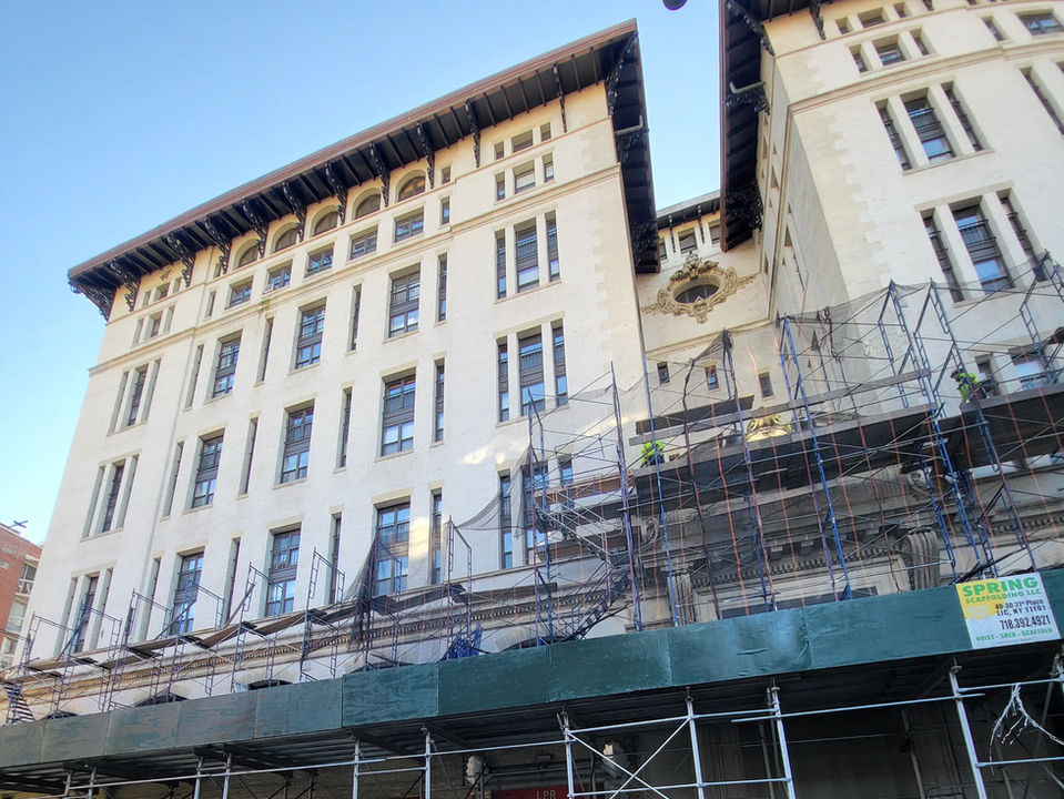 For over a century, Mills House No. 1, now 160 Bleecker Street, has remained an eye catching staple in Manhattan's Greenwich Village. Panorama Contracting was pleased to be involved with the exterior restoration project on this landmark building. Built in 1896, as a hotel for New York's working class, it consisted of over 1,500 tiny rooms. In the 1970's the building was converted into a cooperative. In a multi -year restoration, Panorama Contracting carefully brought back the building to its former glory. Replacing nearly 700LF of copper cornice, complete facade masonry repointing, select brick replacement, corner replacement, KEMPER Roofing System, lintel replacement, stone replacement & patching, caulking all windows, cornice bracket and window panel scrape/prime/paint, & chimney replacement.